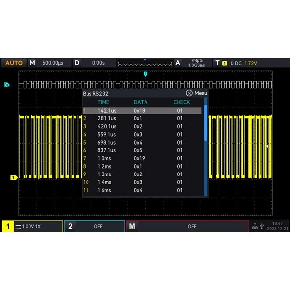 - Vstupní citlivost: 500µV>V/div... RS232, UART, I2C, SPI