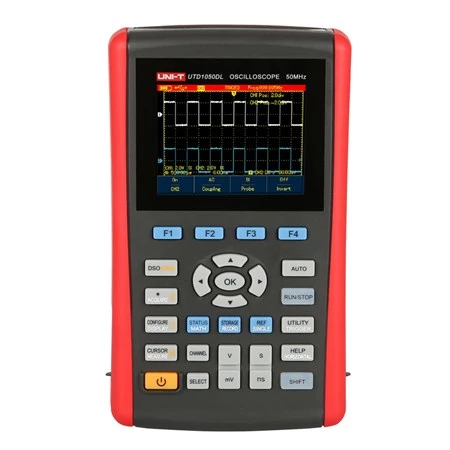 UTD1000DL serijos nešiojamas skaitmeninis atmintinis osciloskopas yra nešiojamas 2 kanalų prietaisas. Jis taip pat turi 250 MS/s atrankos dažnį ir, skirtingai nuo žemesnės klasės UTD1025DL versijos, 50 MHz juostos plotį. Jis turi paprastą, funkcionalų priekinį skydelį, kuris leidžia atlikti visus pagrindinius matavimus ir procedūras be būtinybės pasiekti prietaiso apačią. Naudokite AUTO mygtuką, kad atliktumėte greitus nustatymus.
