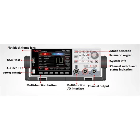 Funkcijski generator UTG1042X iz serije UTG1000X ima natančno in stabilno izhodno valovno obliko z ločljivostjo do 1 μHz. Je ekonomičen, visoko zmogljiv, večfunkcionalni generator poljubnih valovnih oblik. Lahko generira natančne, stabilne in čiste izhodne signale z nizko stopnjo popačenja. Z udobnim upravljanjem, odličnimi tehničnimi kazalniki in enostavnim grafičnim zaslonom je to večfunkcionalna naprava, ki izpolnjuje potrebe učenja, testiranja in proizvodnje.