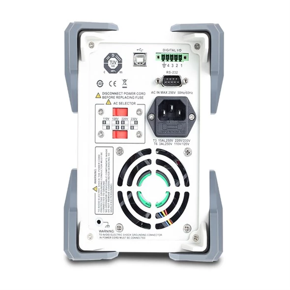 Programmerbar strömförsörjning. Den har 5 minnen för enkel lagring och återkallning av inställda lägen och en låsknapp för att förhindra oönskade parameterändringar. På baksidan av strömförsörjningshöljet finns USB-enhets- och RS232-kontakter samt DIGITAL I/O-gränssnitt för fjärrstyrning av strömförsörjningen. Med den medföljande programvaran är det möjligt att registrera och visa i realtid på den anslutna datorn i en Excel-tabell eller graf över förbrukningen eller belastningsegenskaperna för den anslutna belastningen, och baserat på SCPI-kommunikationskommandon är det möjligt att kommunicera med datorn.
