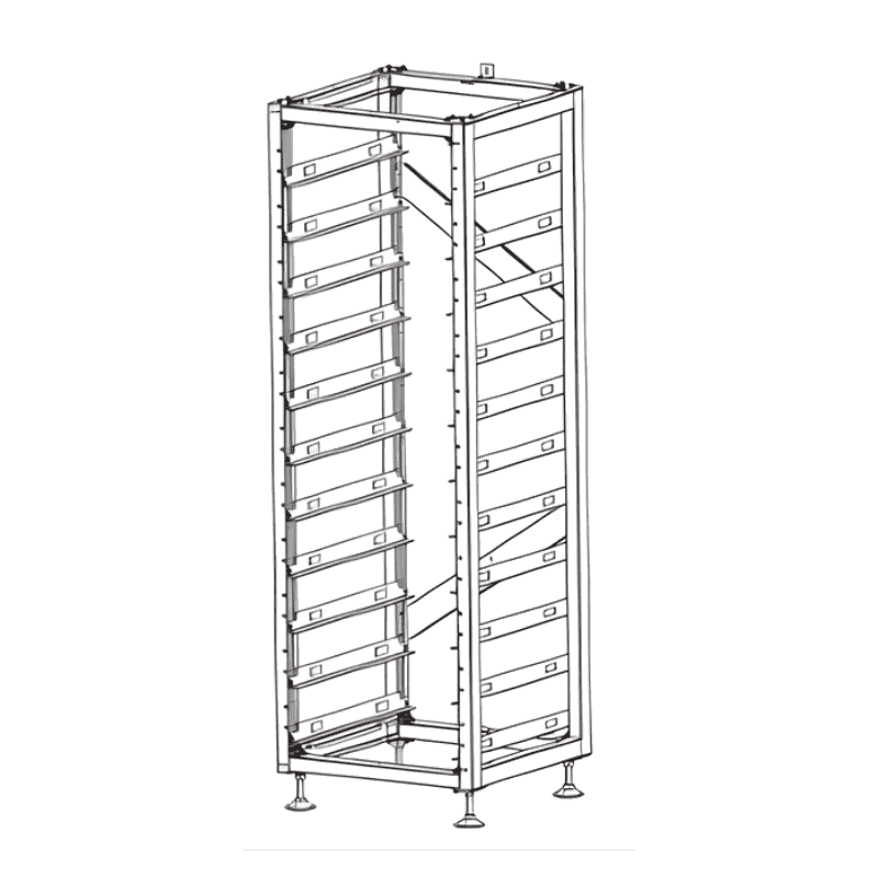Construcția este robustă, cu ranforsări diagonale superioare și inferioare, asigurând stabilitate excelentă chiar și în configurații cu greutate mare. Rack-ul este proiectat pentru montaj fix în poziție verticală și se potrivește perfect în aplicații industriale, comerciale sau rezidențiale avansate.